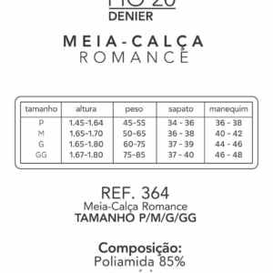 Composição: Fio 20, 85% Poliamida no mínimo